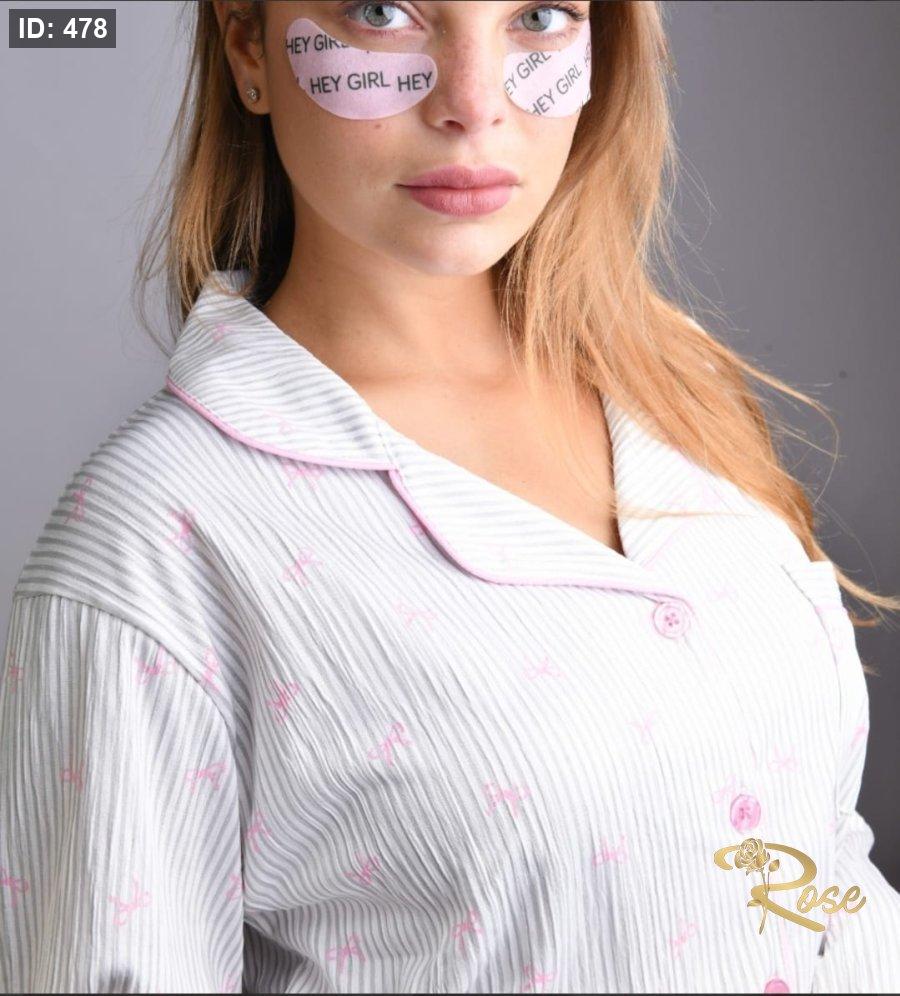 بيجامة بأزرار من قماش اللايكرا المكرمش